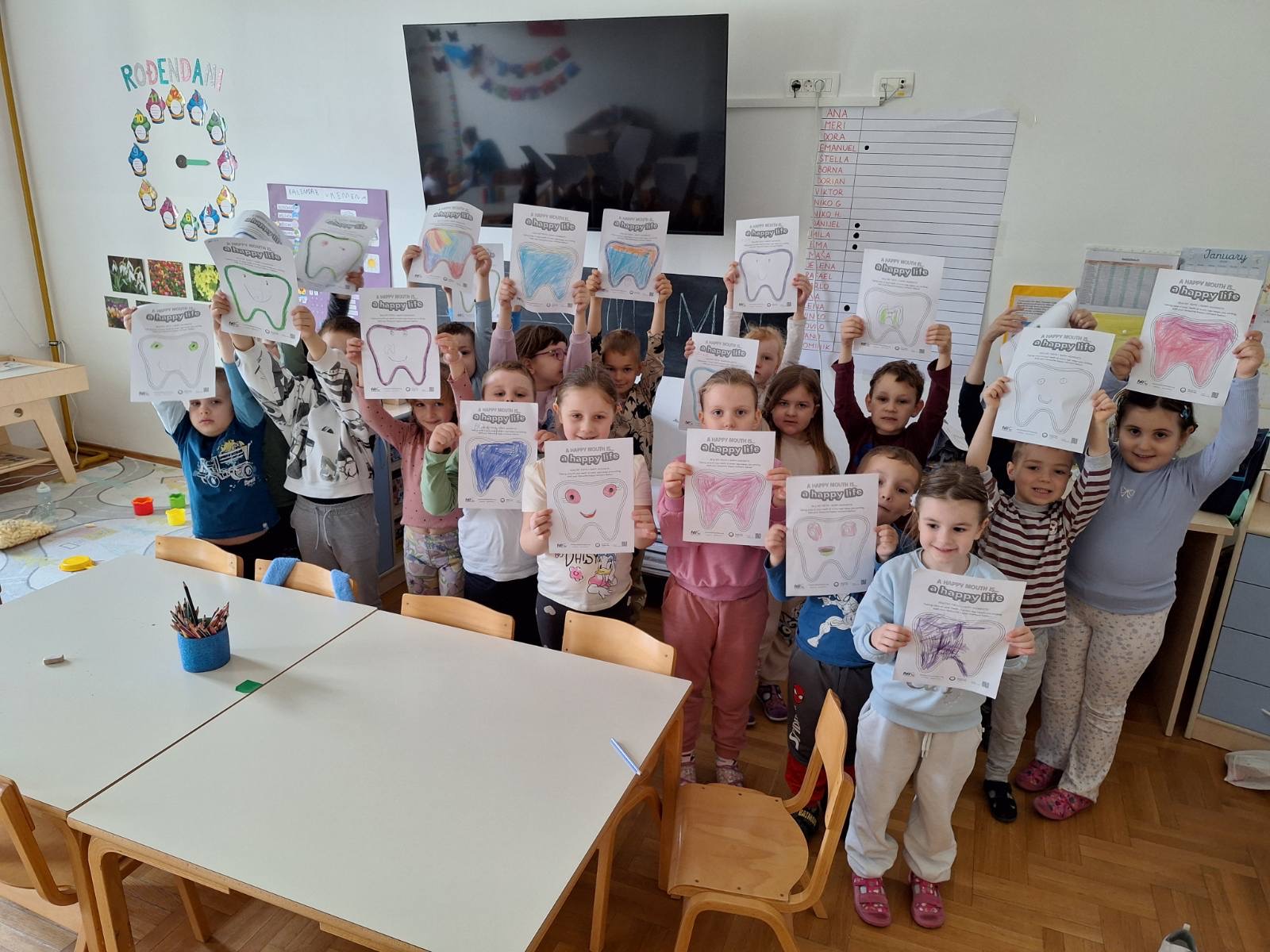 Za kraj zabavnog, ali prije svega poučnog posjeta, dobili su zadatak, napraviti crtež svog sretnog zuba. Navedeno su vrlo uspješno i učinili odmah po dolasku u dječji vrtić te nam poslali fotografiju izvršenog zadatka.