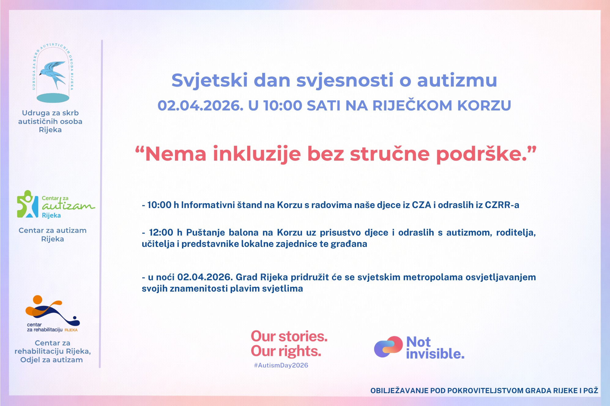 Studijsko putovanje dodatno je obilježeno Svjetskim danom svjesnosti o autizmu (2. travnja). Plavi baloni iznad riječkog Korza simbolično su poslali poruku podrške i zajedništva, dok su aktivnosti Udruge još jednom naglasile važnost konkretnih koraka u unapređenju kvalitete života osoba iz spektra autizma i njihovih obitelji.